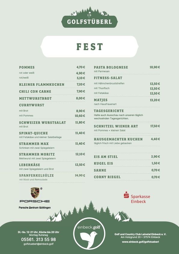 Eine österreichische Berghütte mitten im Leinetal: Das ist unser Golfstüberl. Es erfreut nicht nur unsere golfenden Mitglieder und Gäste mit Speis und Trank, sondern ist auch bei nichtgolfenden Menschen äußerst beliebt. Kein Wunder, denn zur rustikal-gemütlichen Einrichtung bietet es insbesondere bei gutem Wetter von der großzügigen Terrasse eine herrliche Aussicht ins Leinetal und lädt zum erholsamen Verweilen ein.